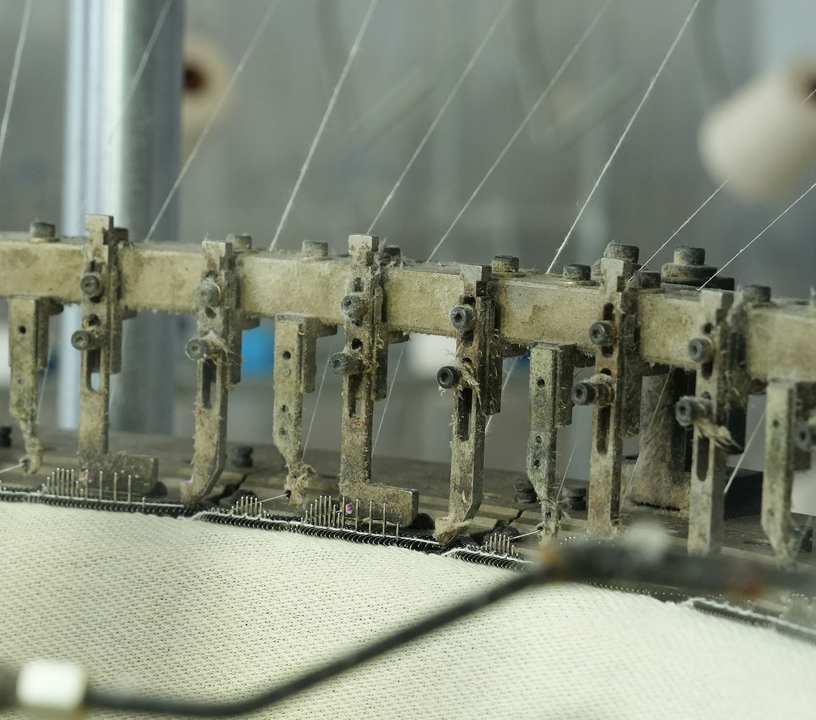 Here, hundreds of tiny needles are arranged in a circle, pulling multiple threads from above while a continuous large tube of fabric emerges below. Unlike flat knitting, circular knitting never pauses or reverses. The threads move in an uninterrupted flow, dramatically increasing the knitting speed. To boost efficiency even further, the machines knit with multiple threads at once, producing several knitted rows simultaneously. It is simple and yet an impressive technology with each machine filing an entire room.